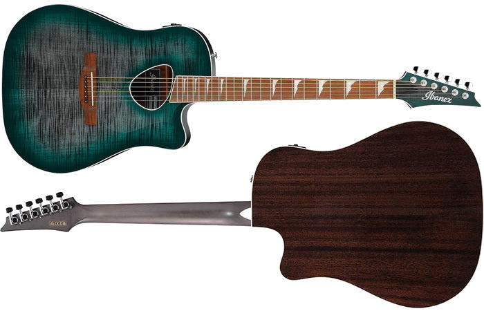 A thin cutaway body and unfettered high-fret access give the Ibanez Altstar ALT30FM a familiar feel that electric players will take to quickly. The compact dreadnought body issues a big tone from its flame maple-topped-sapele tonewood medley. Up the neck, a wickedly flat 15.7-inch fingerboard radius equips this acoustic-electric for speedy single-note flurries — a feature that's sure to be appreciated by progressive music soloists to bluegrass flatpickers. And with the AEQ2UT onboard electronics, all you need to gig out is your Ibanez Altstar ALT30FM and an amp or PA. What's more, chrome die-cast tuners and an onboard electronic tuner will keep you looking and sounding your best.